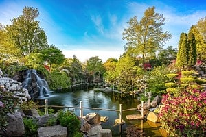 Her skal vi gå på opdagelse i den smukke have med vandfald, grotter, volierer med papegøjer og japanske koi-karper samt et væld af smukke blomster og træer. Der er blandt meget andet ca. 2000 georginer der er i blomst, når vi kommer i august.